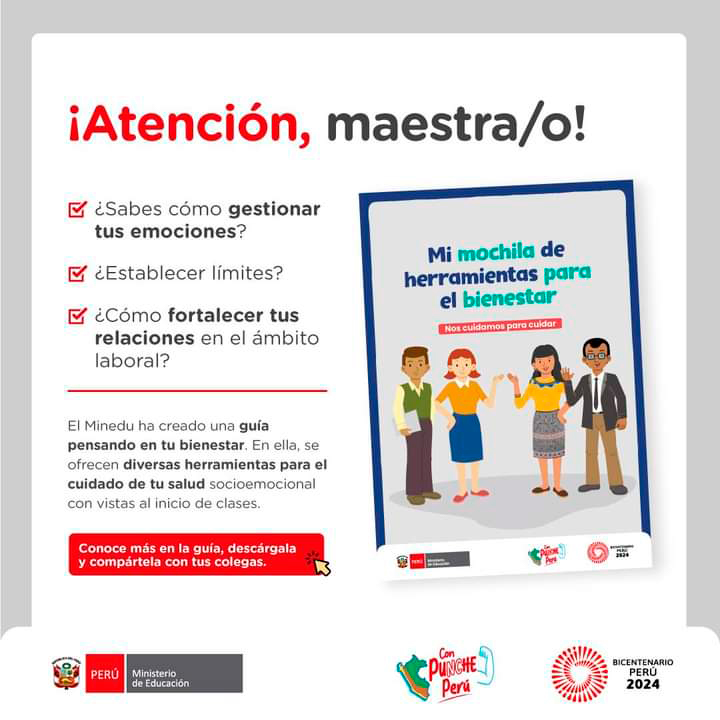 ¡Atención, maestra/o! Revisa la guía “Mi mochila de herramientas para el bienestar”, con la que podrás fortalecer tus habilidades socioemocionales con vistas a nuestro retorno a clases. Descárgala y compártela con tus colegas.