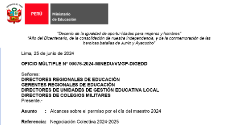 ALCANCES SOBRE EL PERMISO POR EL DÍA DEL MAESTRO 2024Publicado: Martes, 02 Julio 2024 17:50 | Visto: 690PERMISO POR EL DÍA DEL MAESTRO 2024 Anterior Siguiente