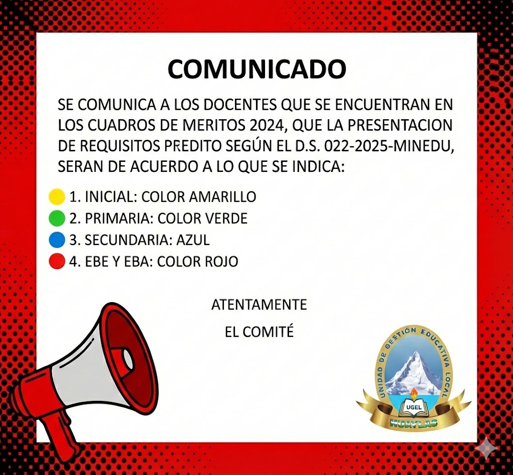 COMUNICADO COLOR DE FOLDER DOCENTES QUE SE ENCUENTRAN EN EL CUADRO DE MERITOS 2024