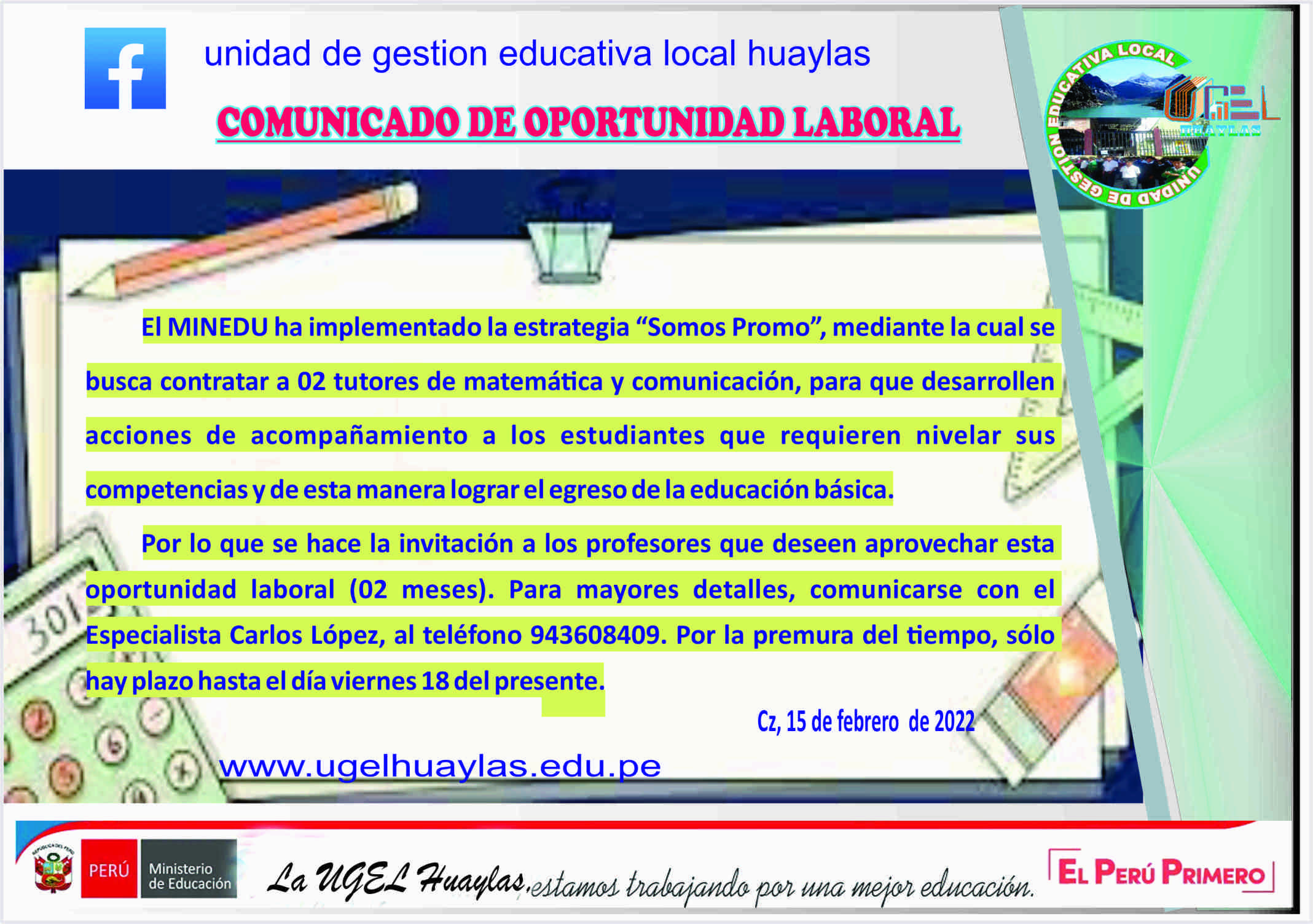 OPORTUNIDAD LABORAL "SOMOS PROMO"Publicado: Miércoles, 16 Febrero 2022 02:40 | Visto: 1307 Anterior Siguiente