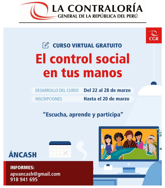 Curso Virtual "El Control Social en tus Manos" - ContraloríaPublicado: Miércoles, 16 Marzo 2022 22:59 | Visto: 913 Anterior Siguiente