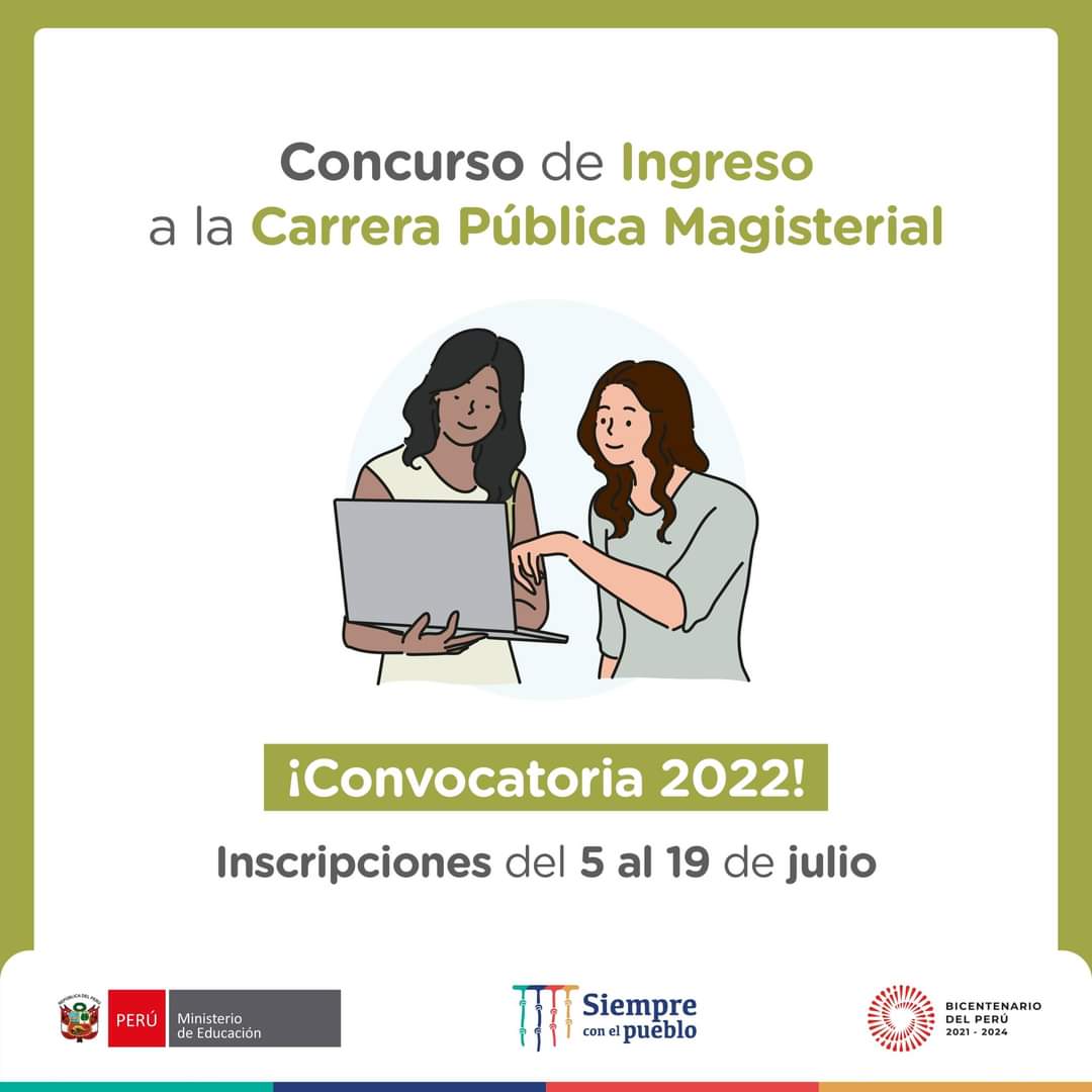 CONCURSO DE INGRESO A LA CARRERA PÚBLICA MAGISTERIAL 2022Publicado: Lunes, 04 Julio 2022 16:41 | Visto: 963Dale Click en el afiche para tu Inscripción: Anterior Siguiente