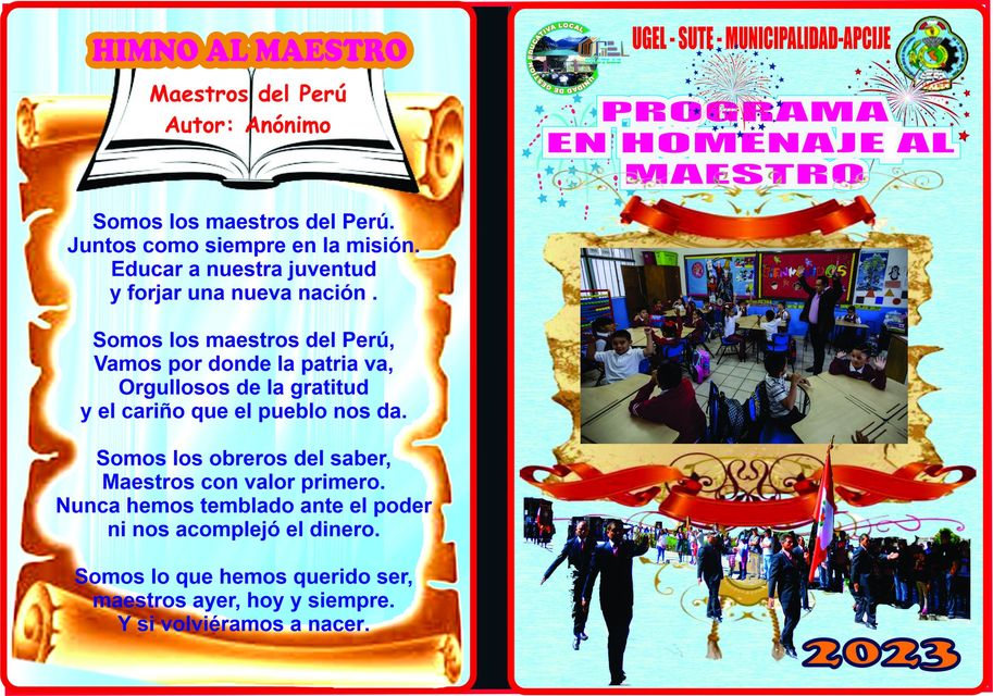 PROGRAMA DE CELEBRACIÓN POR EL DÍA DEL MAESTRO HUAYLINOPublicado: Miércoles, 28 Junio 2023 16:54 | Visto: 2296DESCARGUE PROGRAMA: CLICK EN EL AFICHE Anterior Siguiente